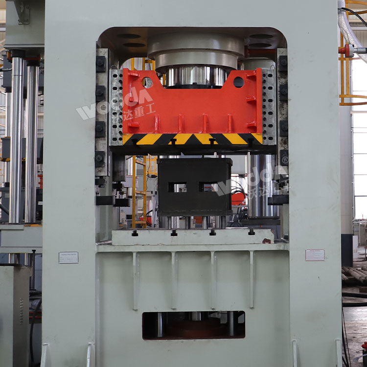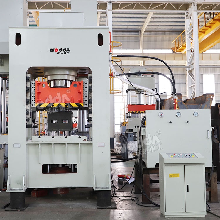 1、630吨框架式液压机机身采用计算机优化设计,为全钢板焊接框架式结构,精度保持性好。